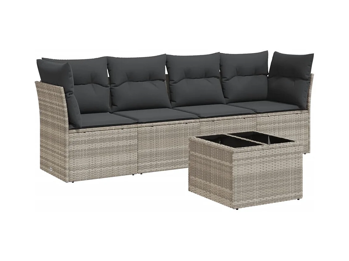 Salon de jardin 5 pcs avec coussins gris clair résine tressée