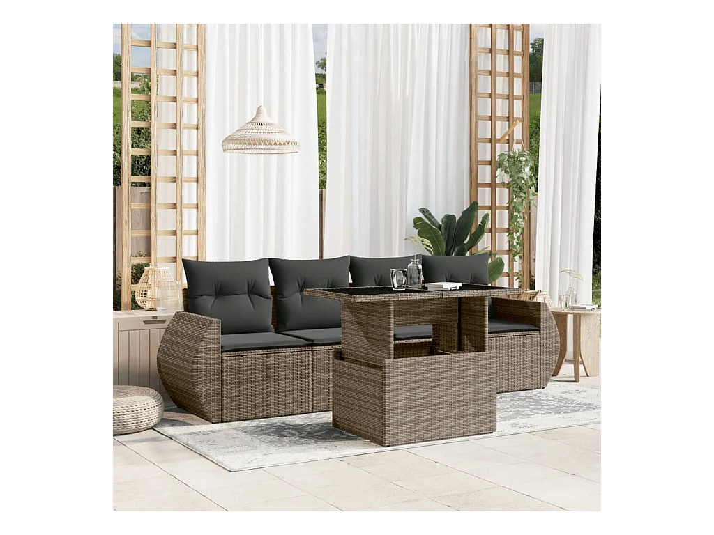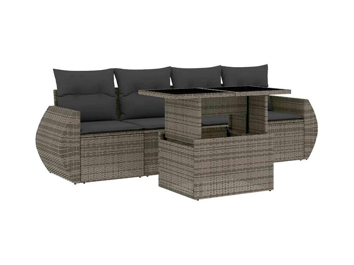 Salon de jardin 5 pcs avec coussins gris résine tressée