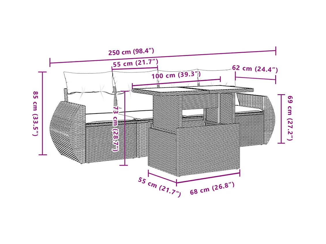 Salon complet de jardin Canapé 2 places et 2 fauteuils