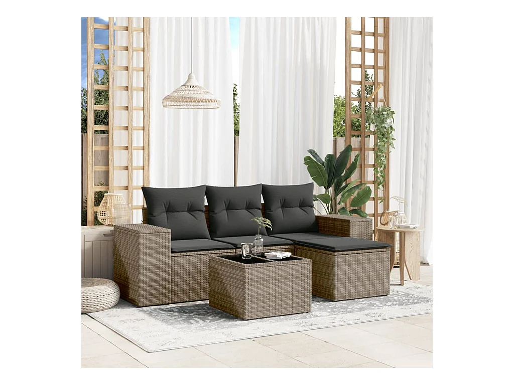 Salon de jardin 5 pcs avec coussins gris résine tressée
