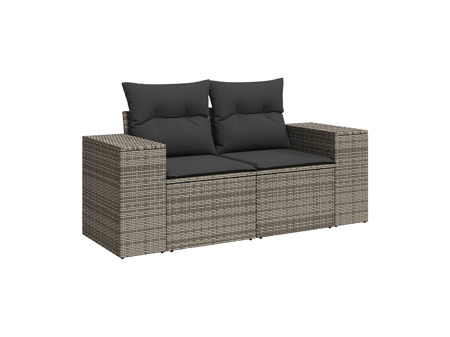 Salon de jardin 9 pcs avec coussins gris résine tressée