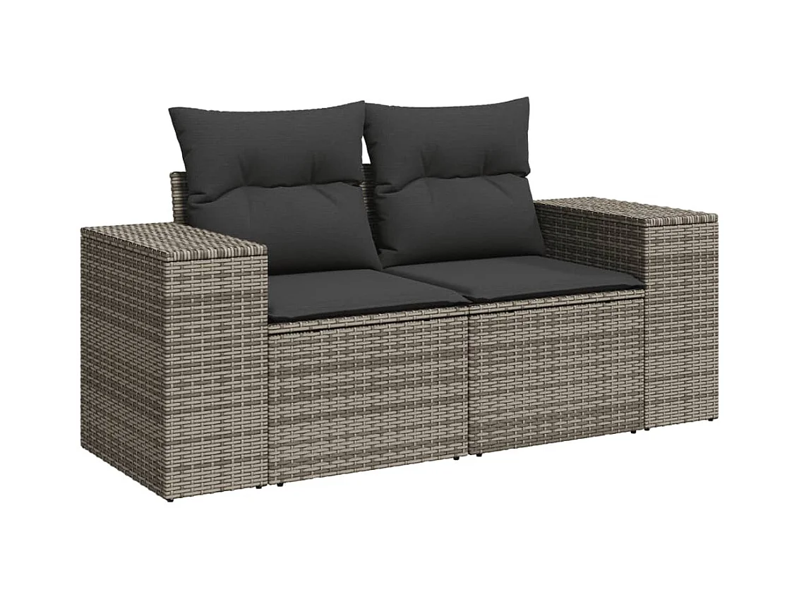 Salon de jardin 8 pcs avec coussins gris résine tressée