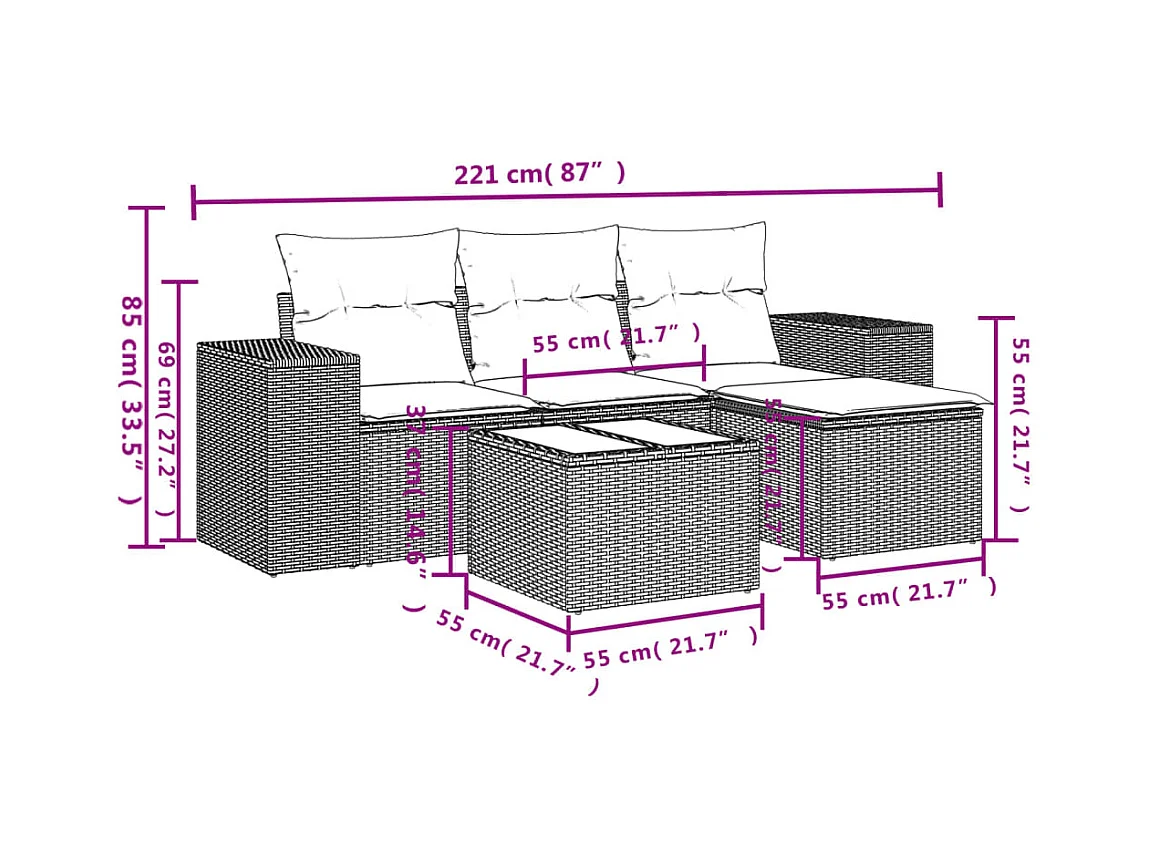 Salon de jardin 5 pcs avec coussins gris clair résine tressée