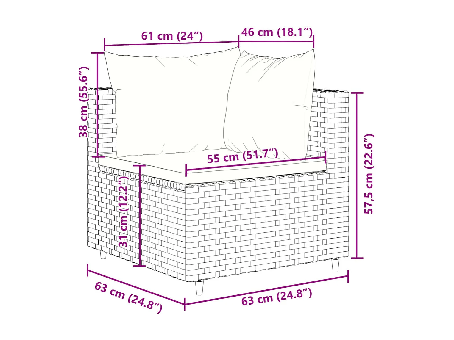 Salon de jardin 4 pcs avec coussins Gris Résine tressée