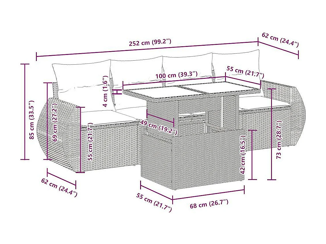 Salon complet de jardin Canapé 2 places et 2 fauteuils