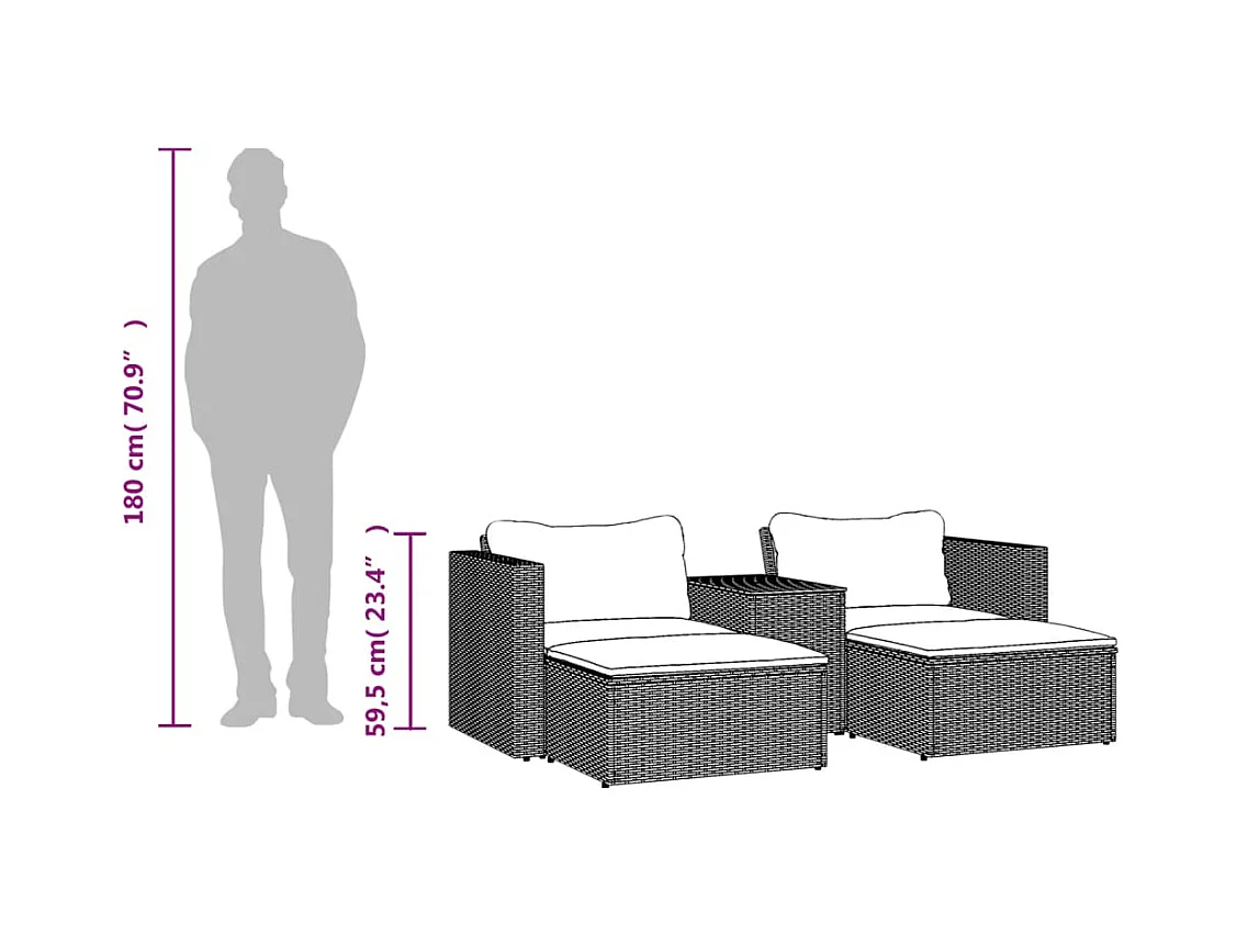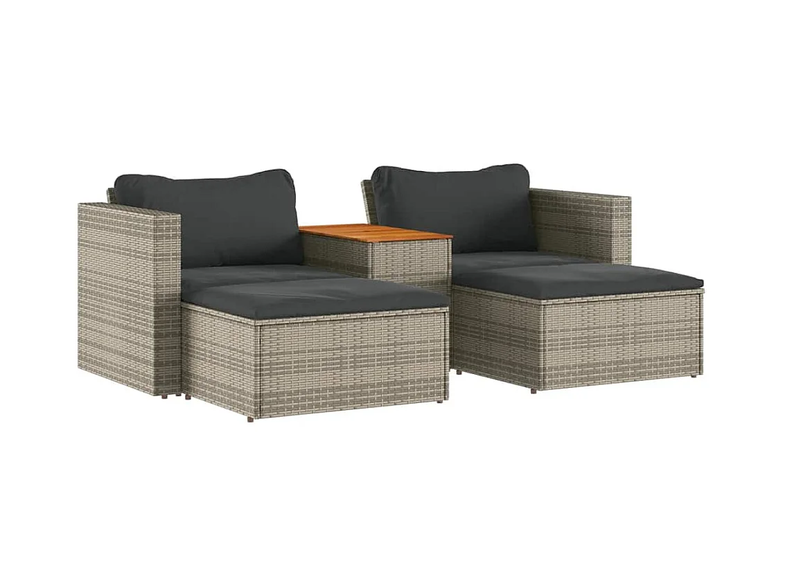Salon de jardin 5 pcs avec coussins gris résine tressée acacia