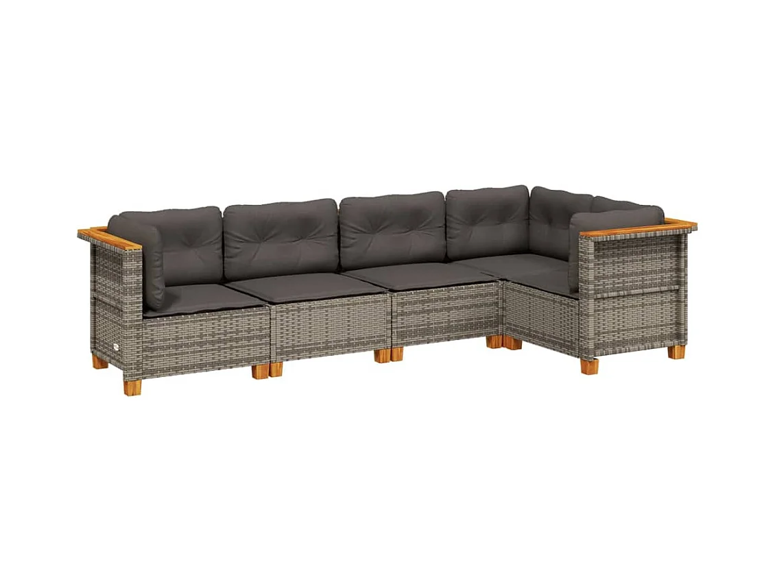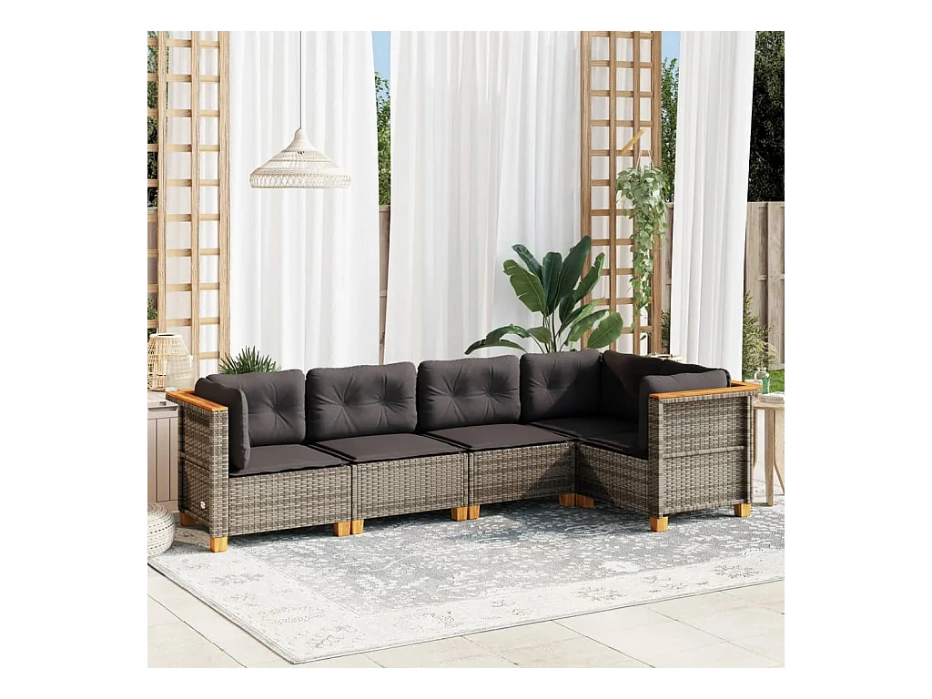 Salon de jardin 5 pcs avec coussins gris résine tressée FR12881