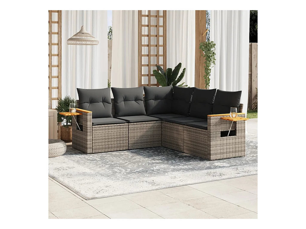 Salon de jardin 5 pcs avec coussins gris résine tressée FR14929