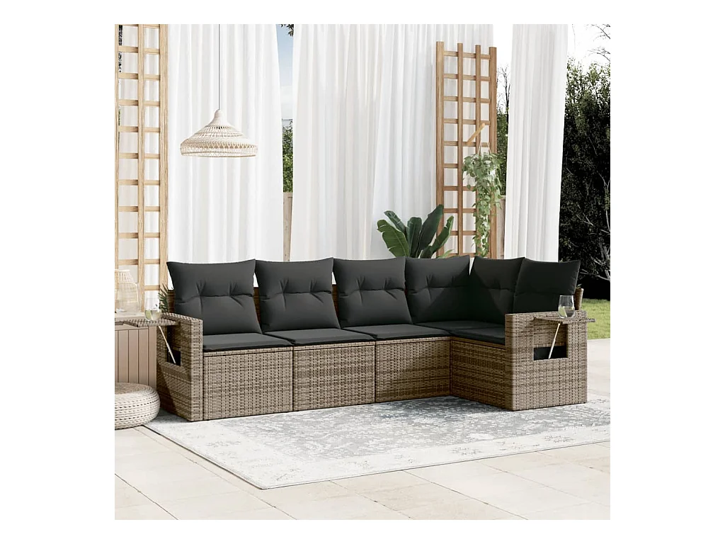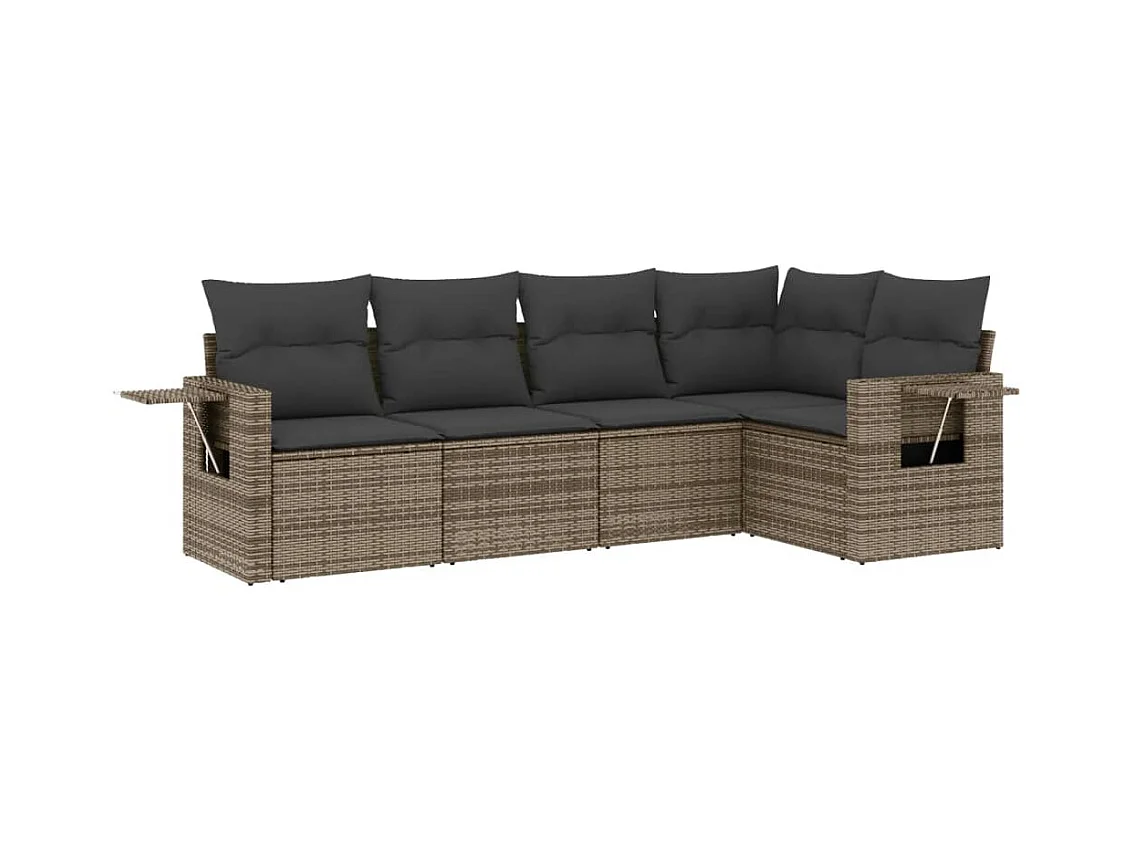 Salon de jardin 5 pcs avec coussins gris résine tressée FR22765