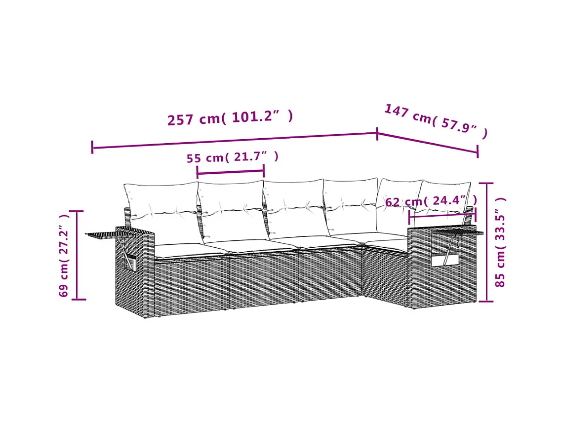 Salon de jardin 5 pcs avec coussins gris résine tressée FR82571