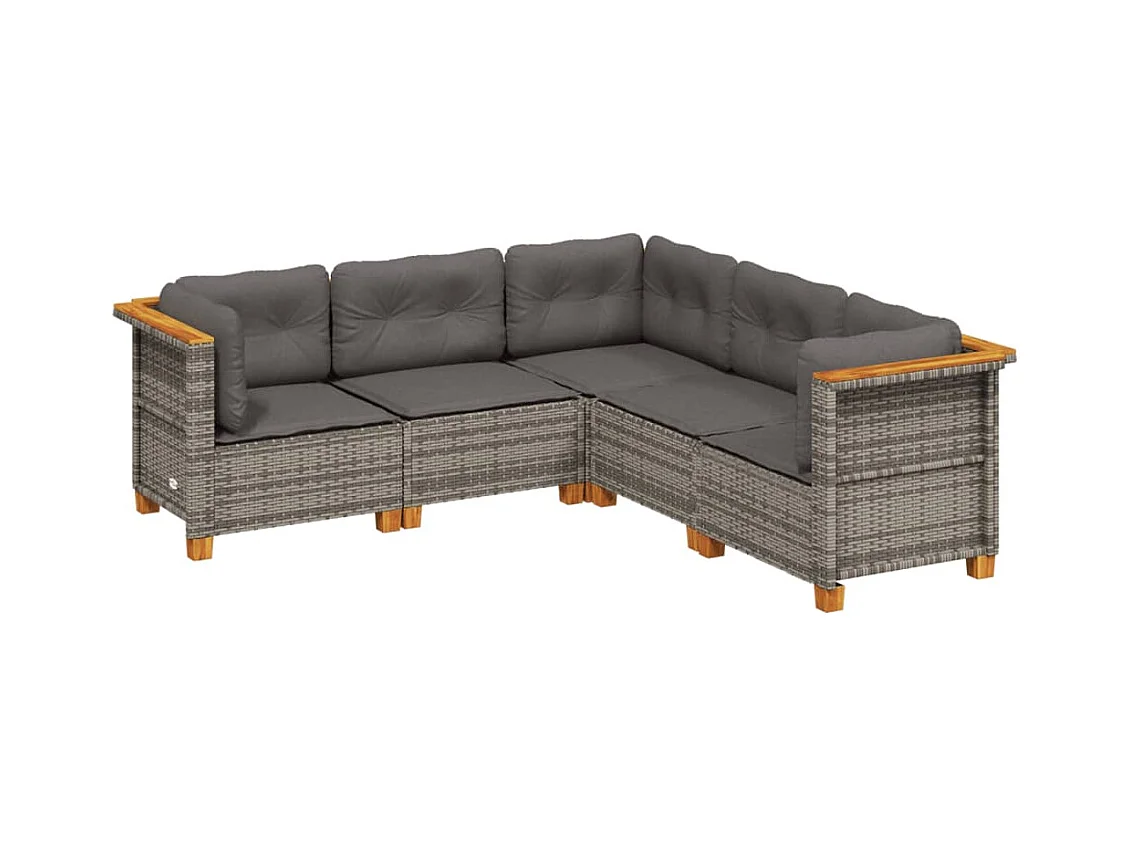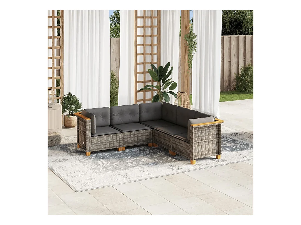 Salon de jardin 5 pcs avec coussins gris résine tressée FR36066
