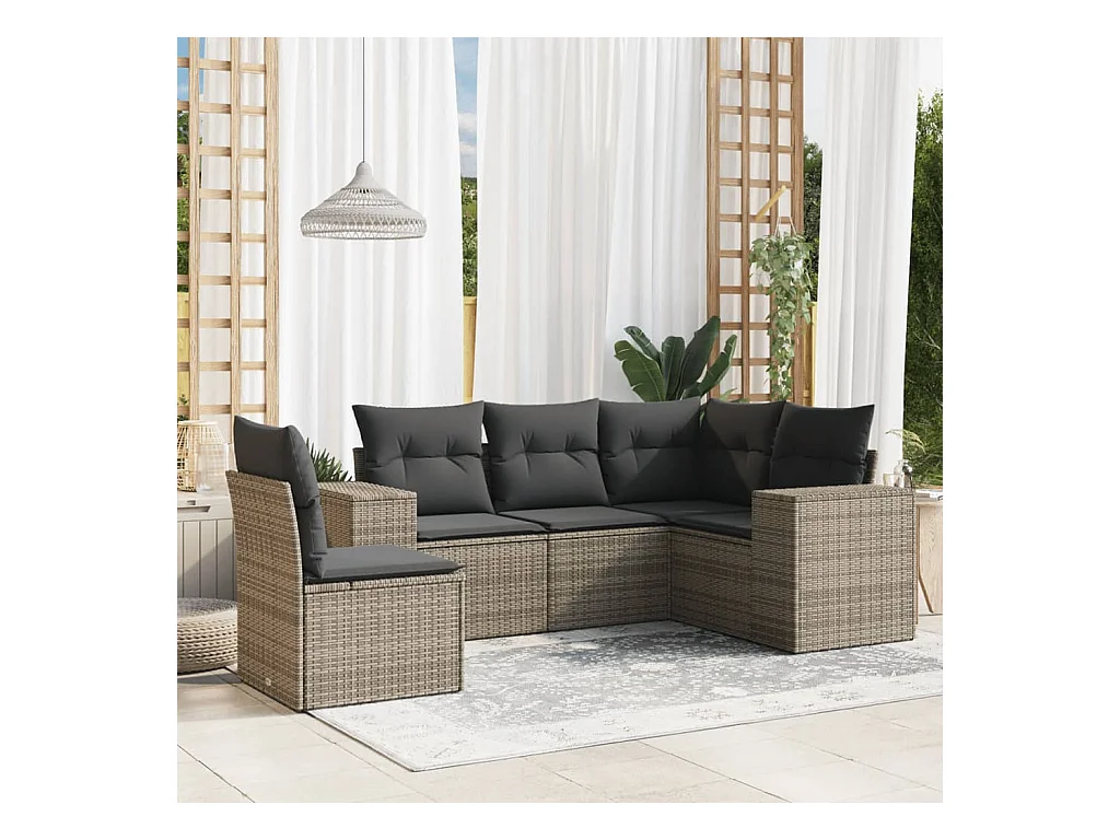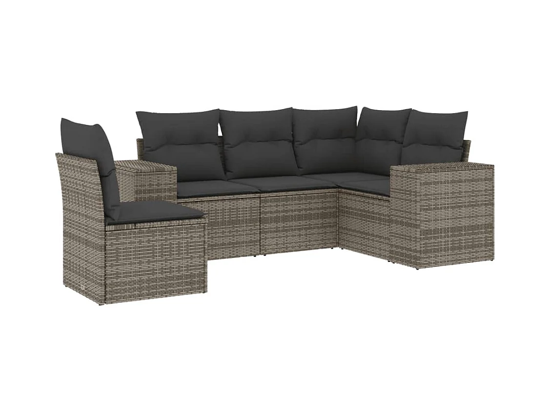 Salon de jardin 5 pcs avec coussins gris résine tressée FR14464
