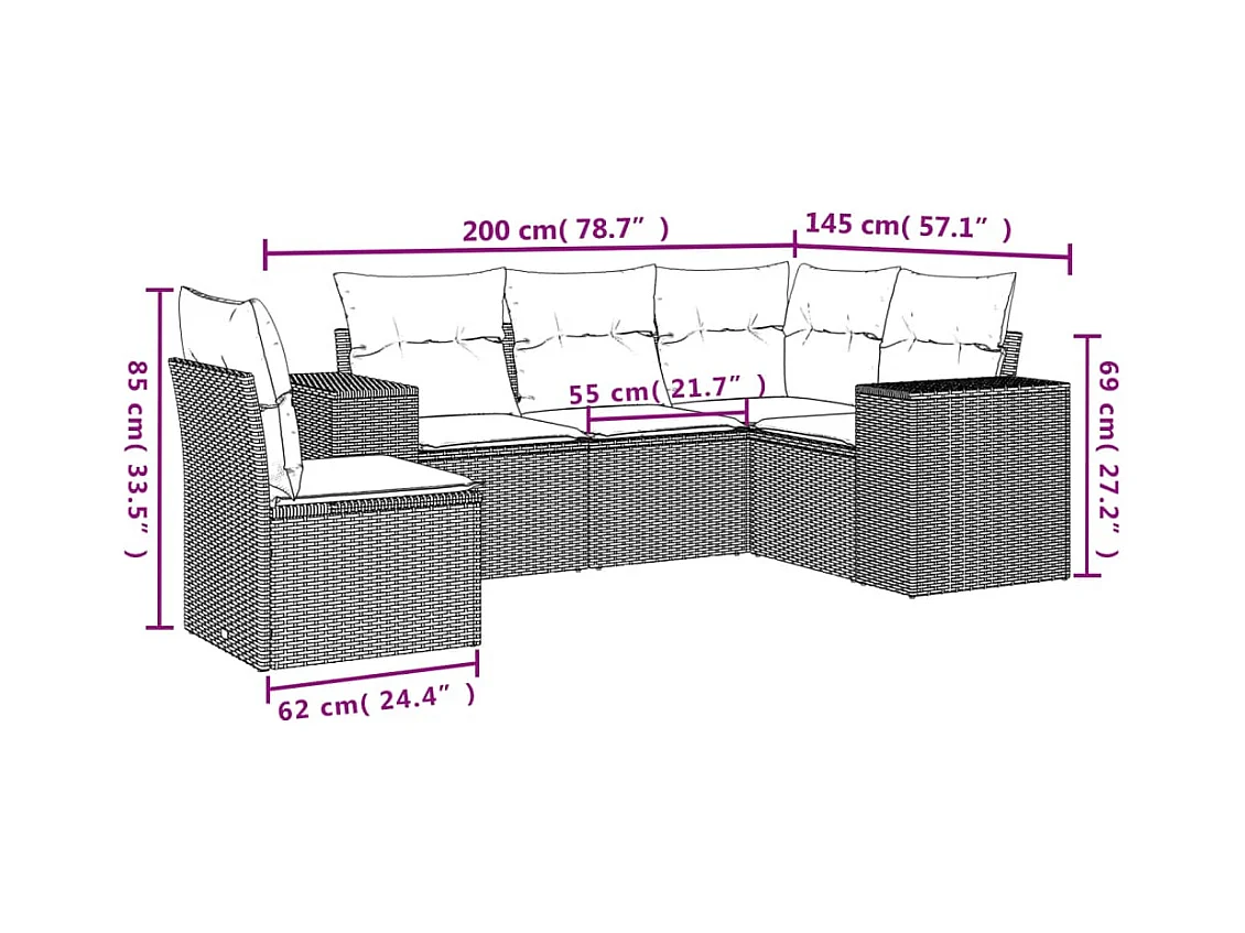 Salon de jardin 5 pcs avec coussins gris résine tressée FR78023