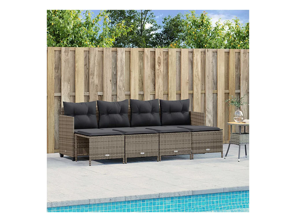 Salon de jardin 5 pcs avec coussins gris résine tressée FR74905
