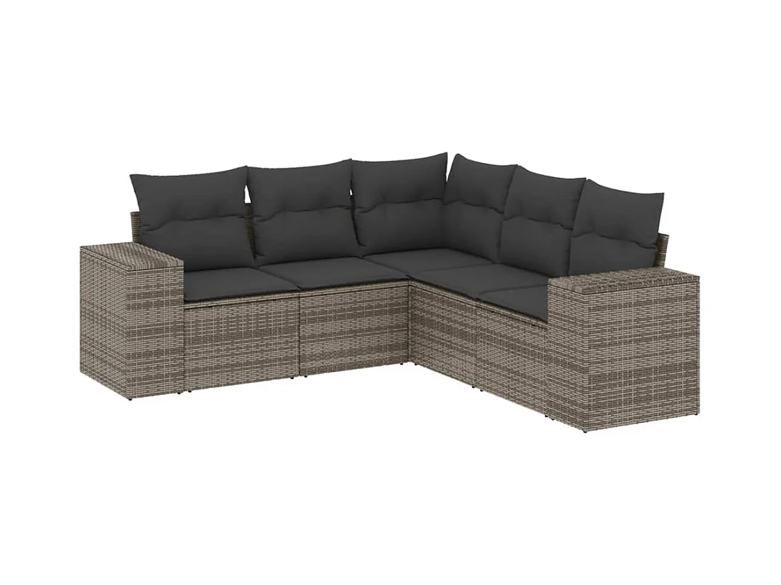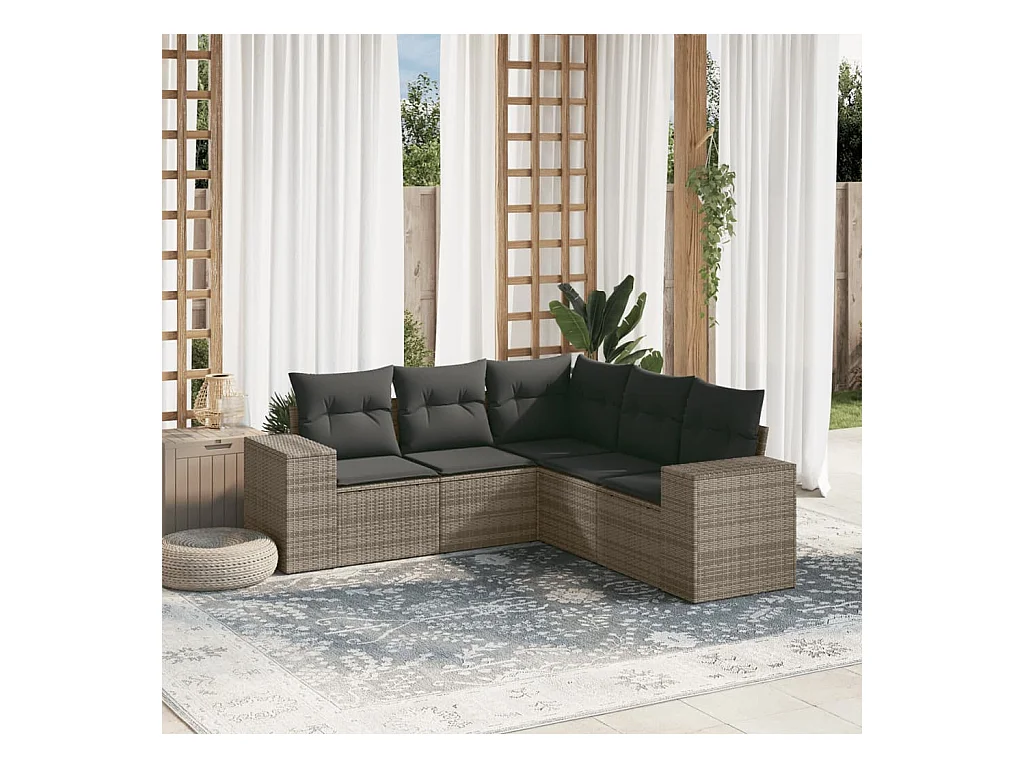 Salon de jardin 5 pcs avec coussins gris résine tressée FR14464