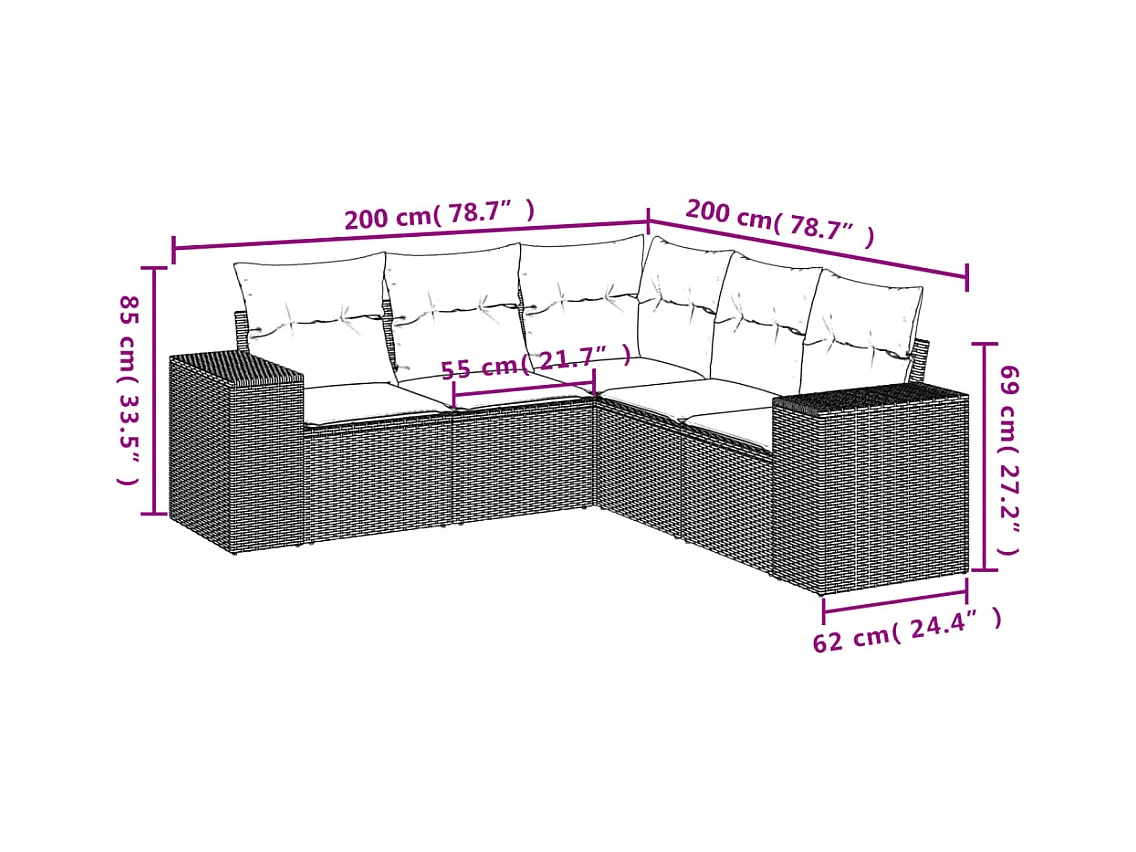 Salon de jardin 5 pcs avec coussins gris résine tressée FR78023