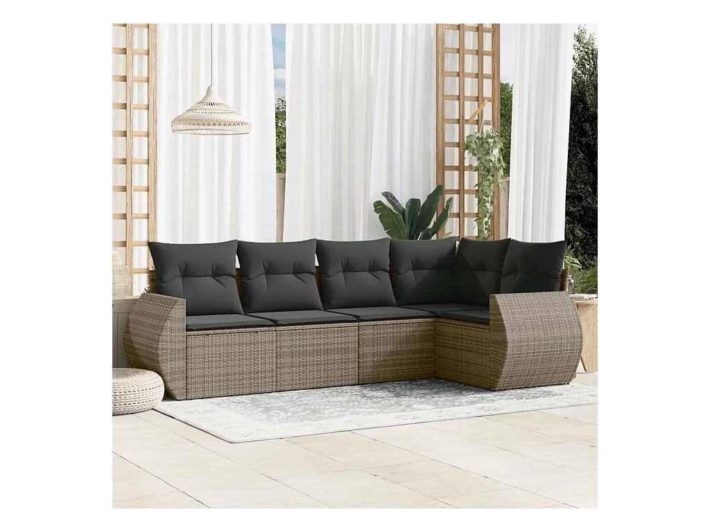 Salon de jardin 5 pcs avec coussins gris résine tressée FR72478