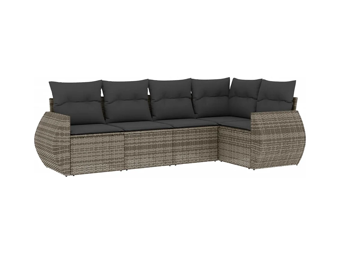 Salon de jardin 5 pcs avec coussins gris résine tressée FR79367