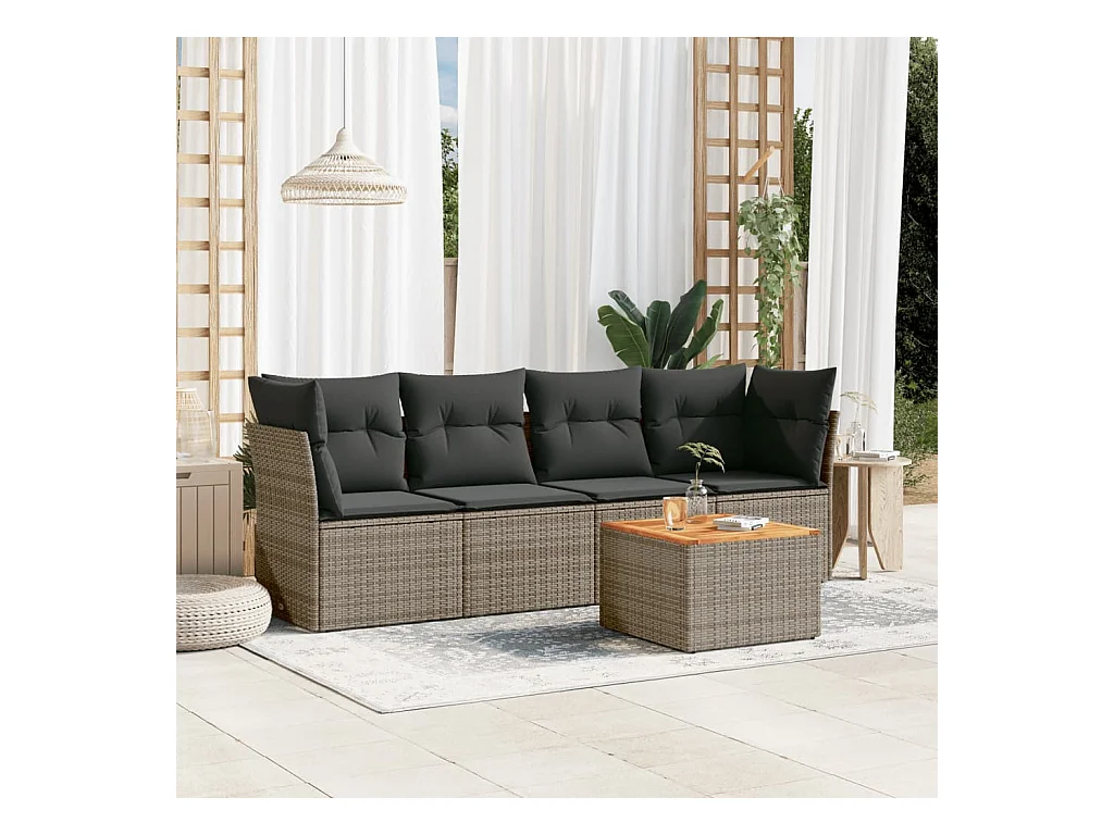 Salon de jardin 5 pcs avec coussins gris résine tressée FR14464