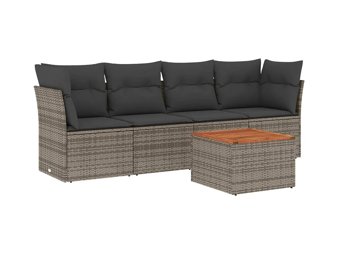 Salon de jardin 5 pcs avec coussins gris résine tressée FR14929