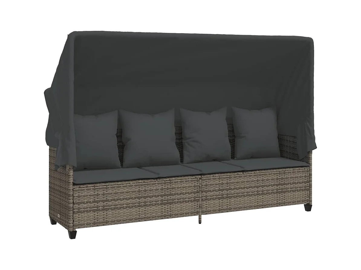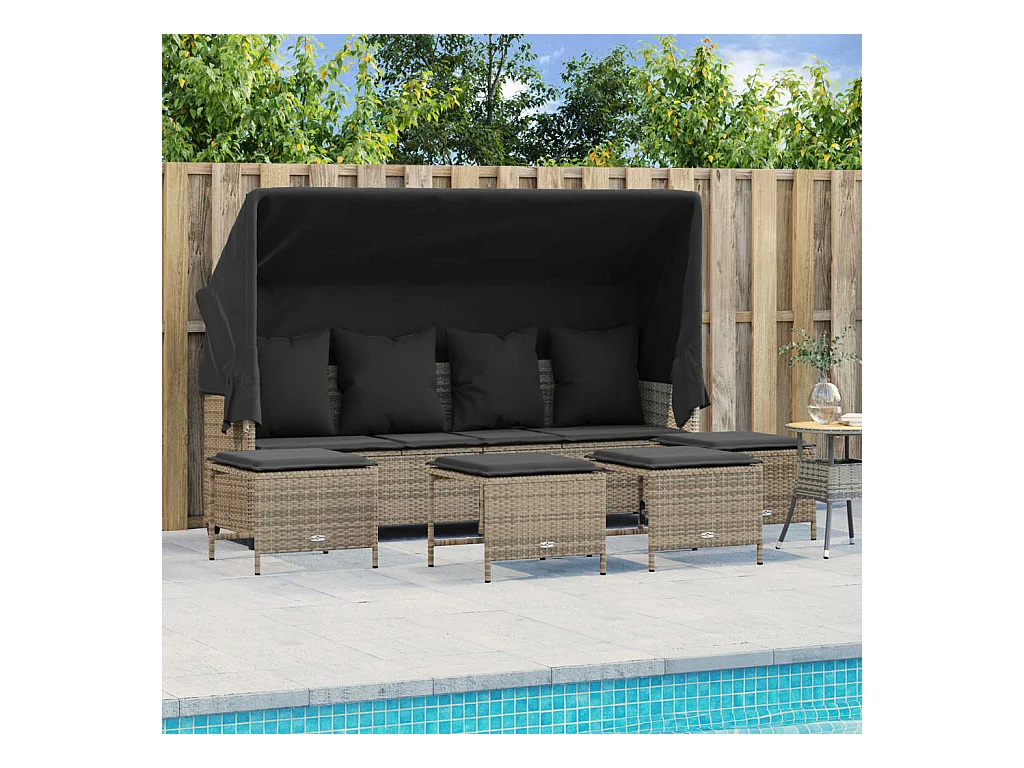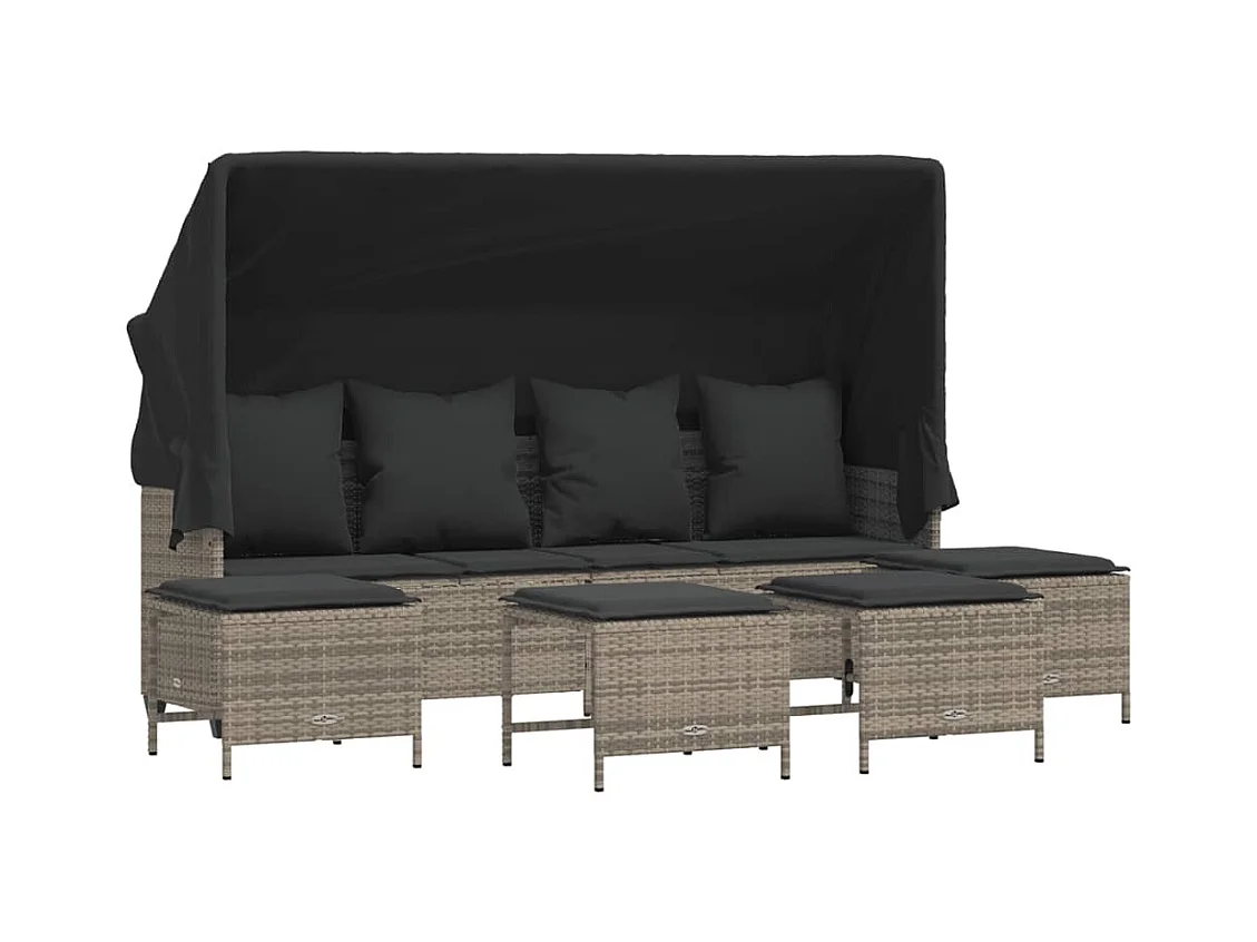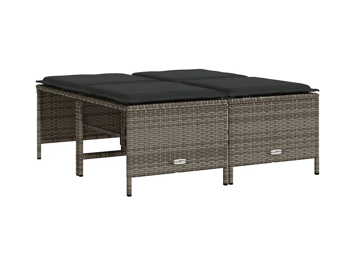 Salon de jardin encastrable 5 pièces et coussins Rotin Gris