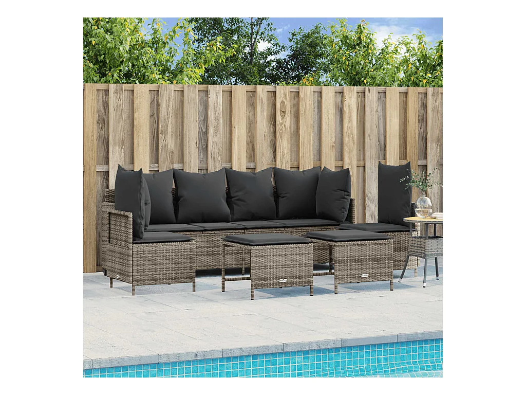 Salon de jardin 5 pcs avec coussins gris résine tressée FR74905