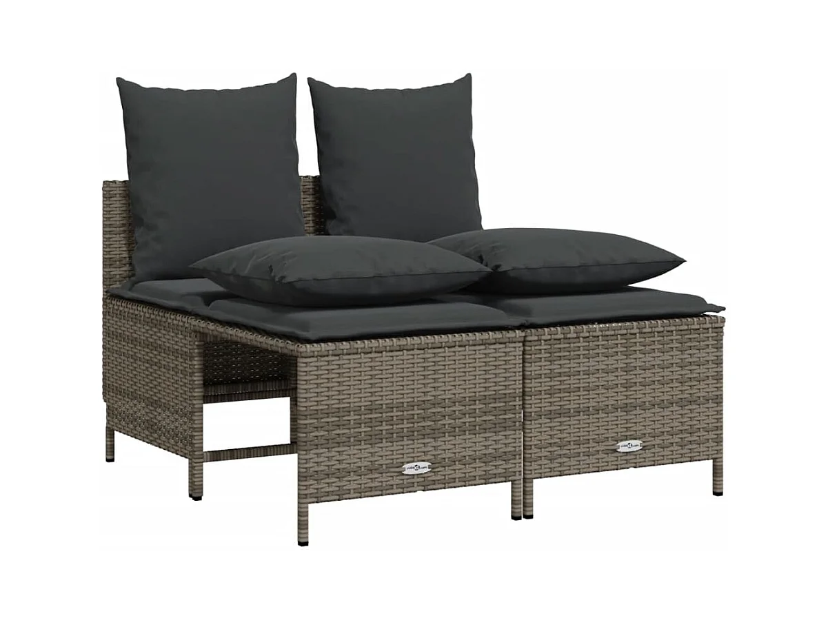 Salon de jardin encastrable 5 pièces et coussins Rotin Gris