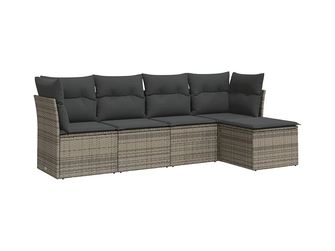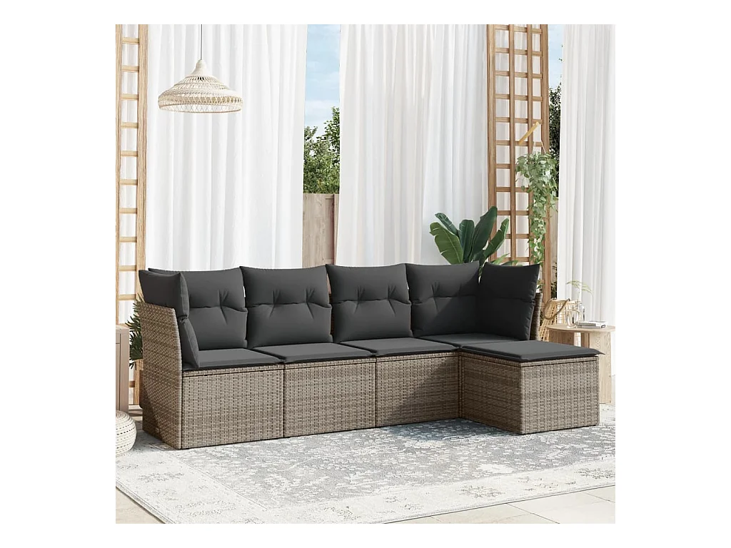 Salon de jardin 5 pcs avec coussins gris résine tressée BE29977