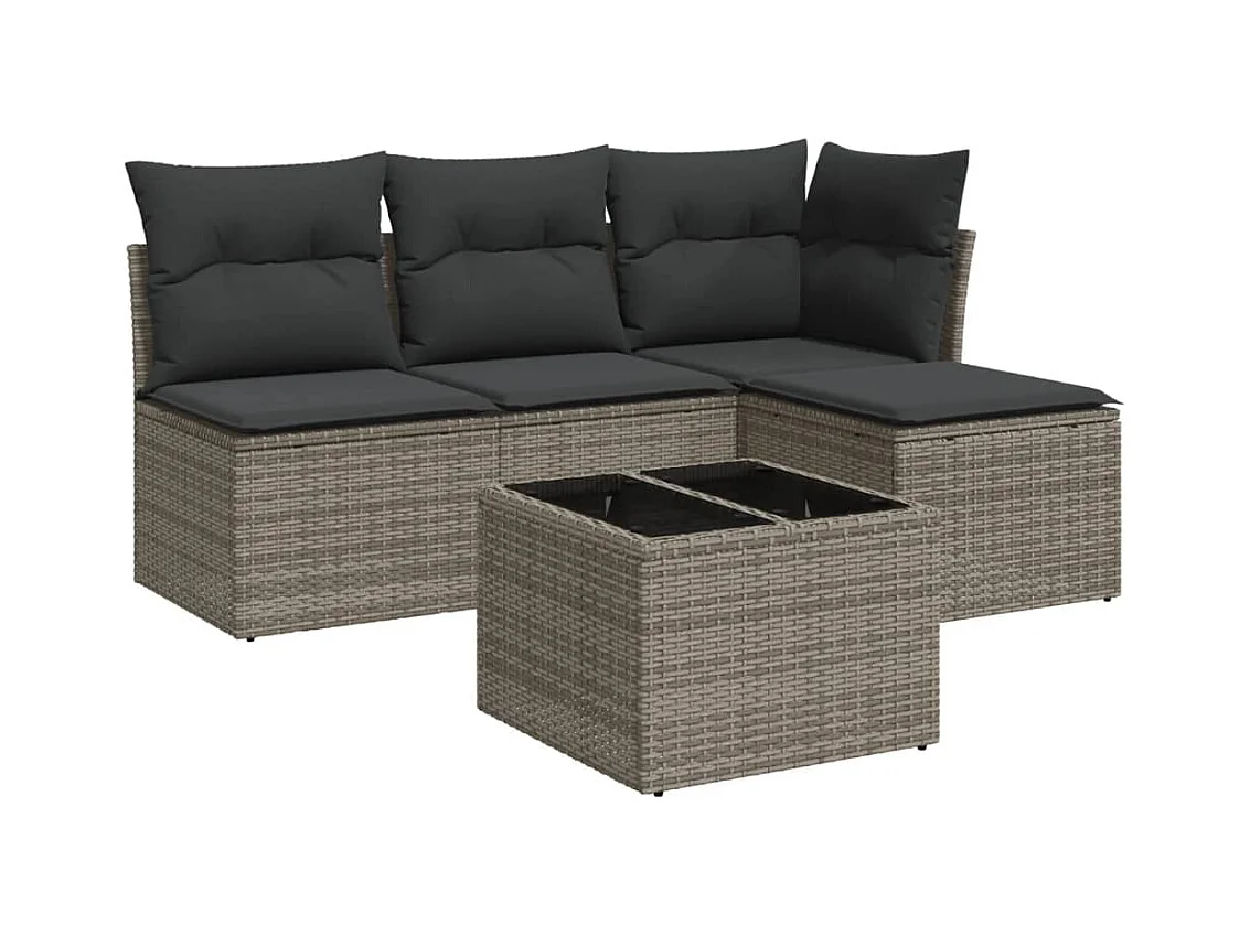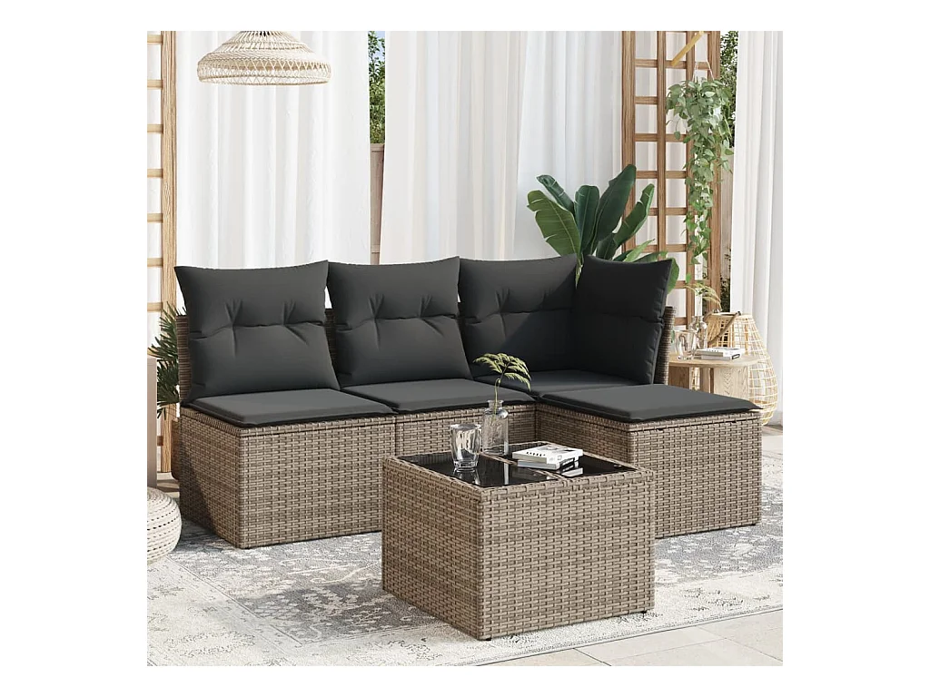 Salon de jardin 5 pcs avec coussins gris résine tressée BE44049