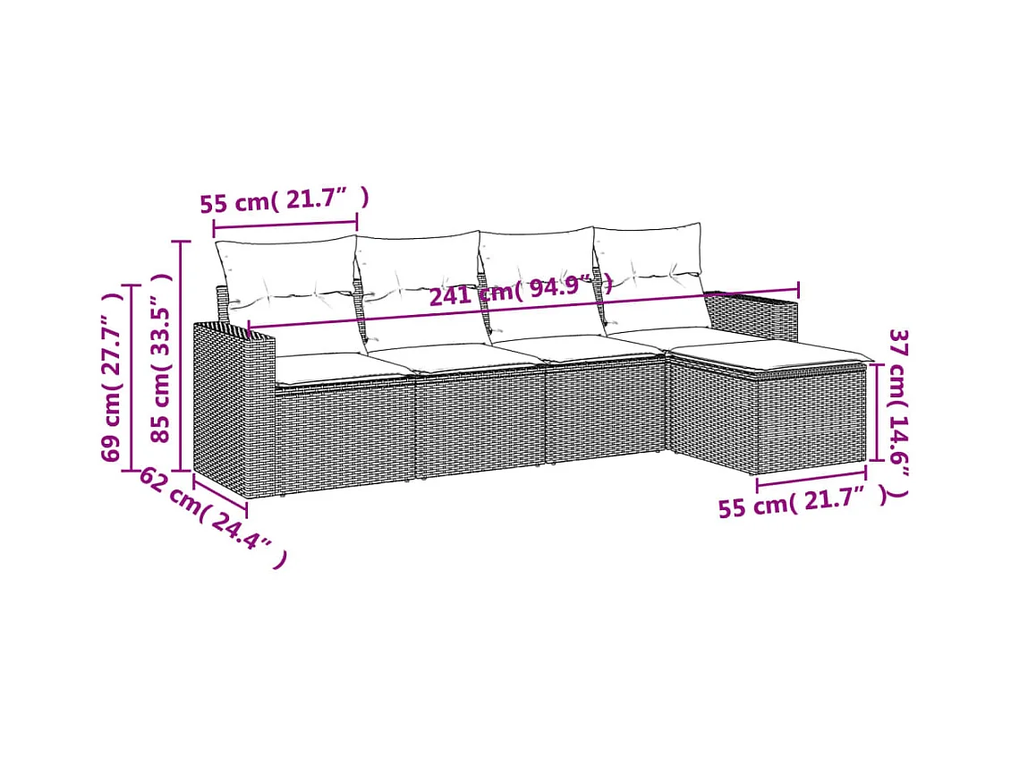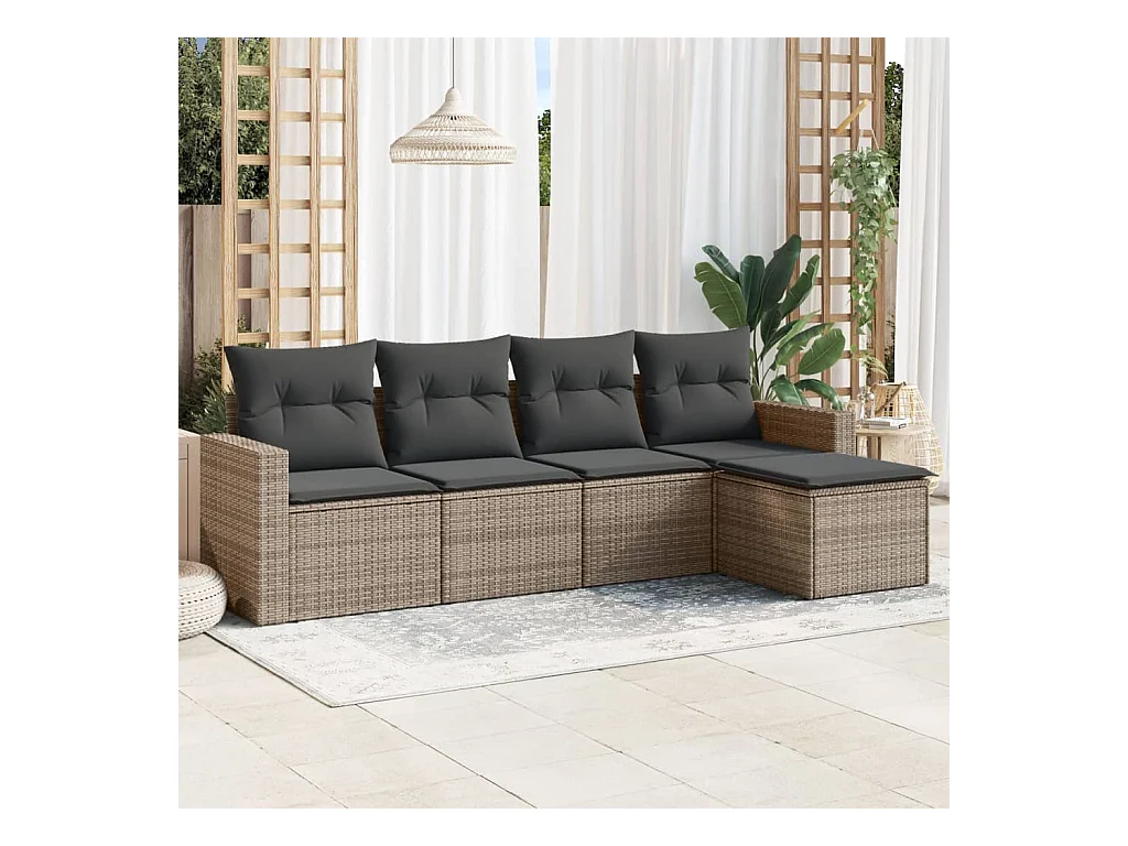 Salon de jardin 5 pcs avec coussins gris résine tressée BE55347