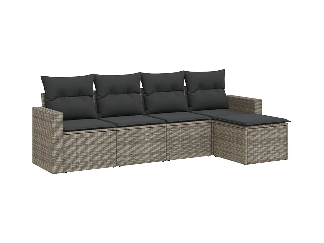 Salon de jardin 5 pcs avec coussins gris résine tressée BE71263