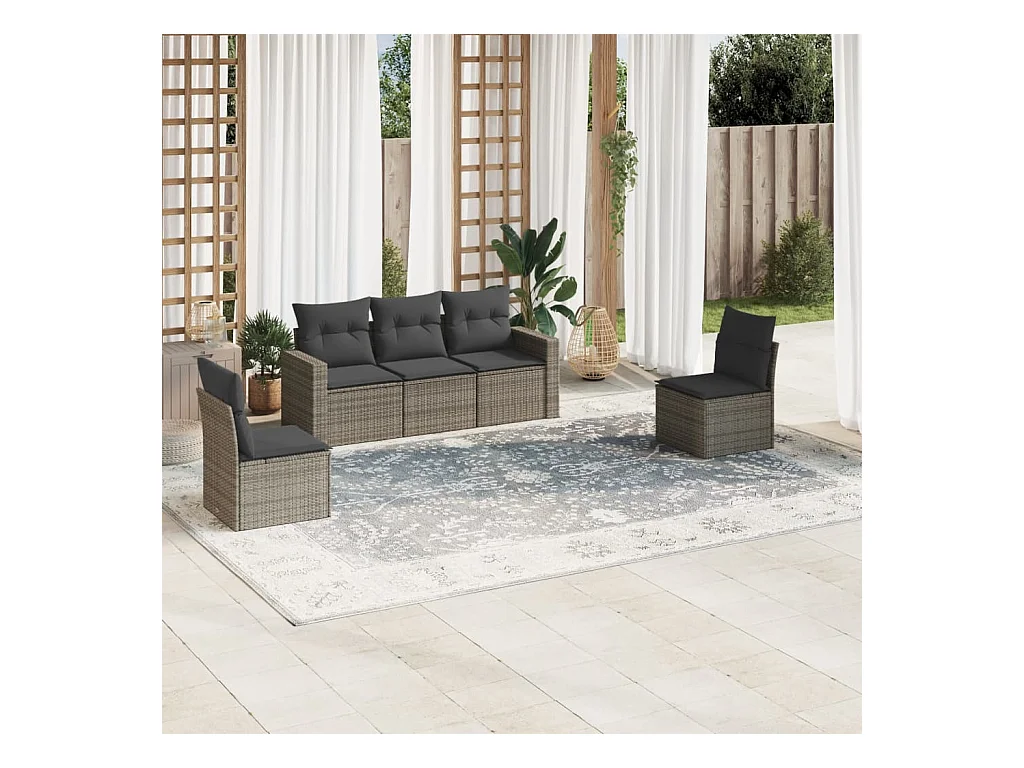 Salon de jardin 5 pcs avec coussins gris résine tressée BE58659