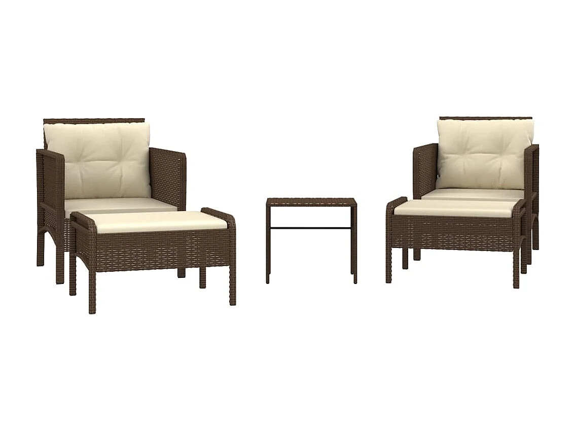 Salon de jardin 5 pcs avec coussins Marron Résine tressée