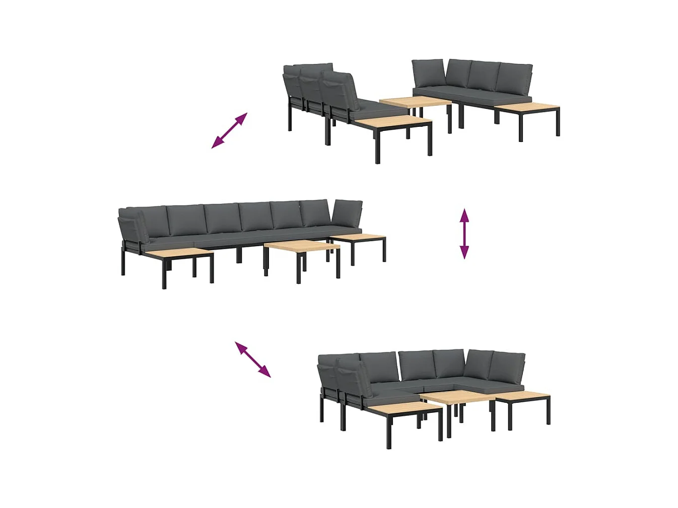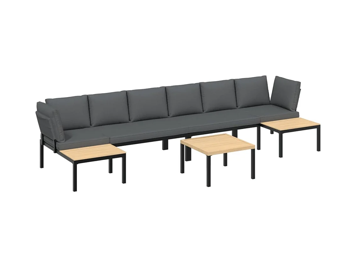 Salon de jardin 5 pcs avec coussins noir aluminium