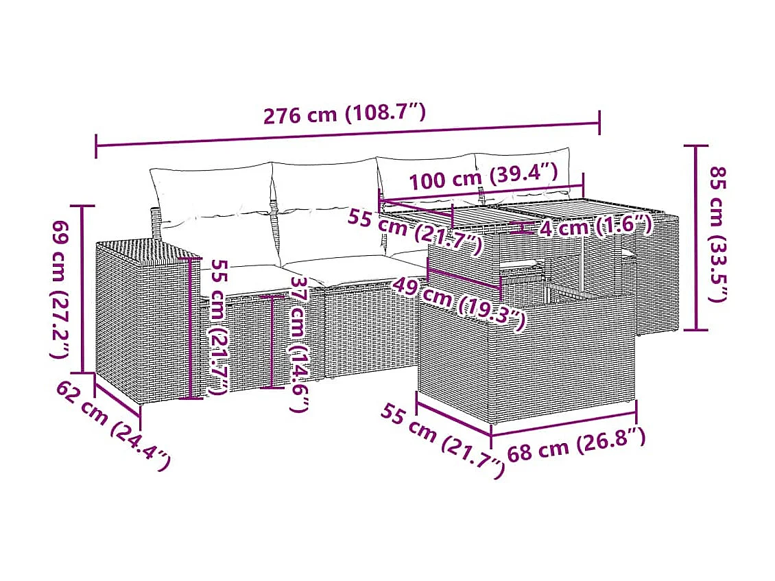 Salon complet de jardin Canapé 2 places et 2 fauteuils