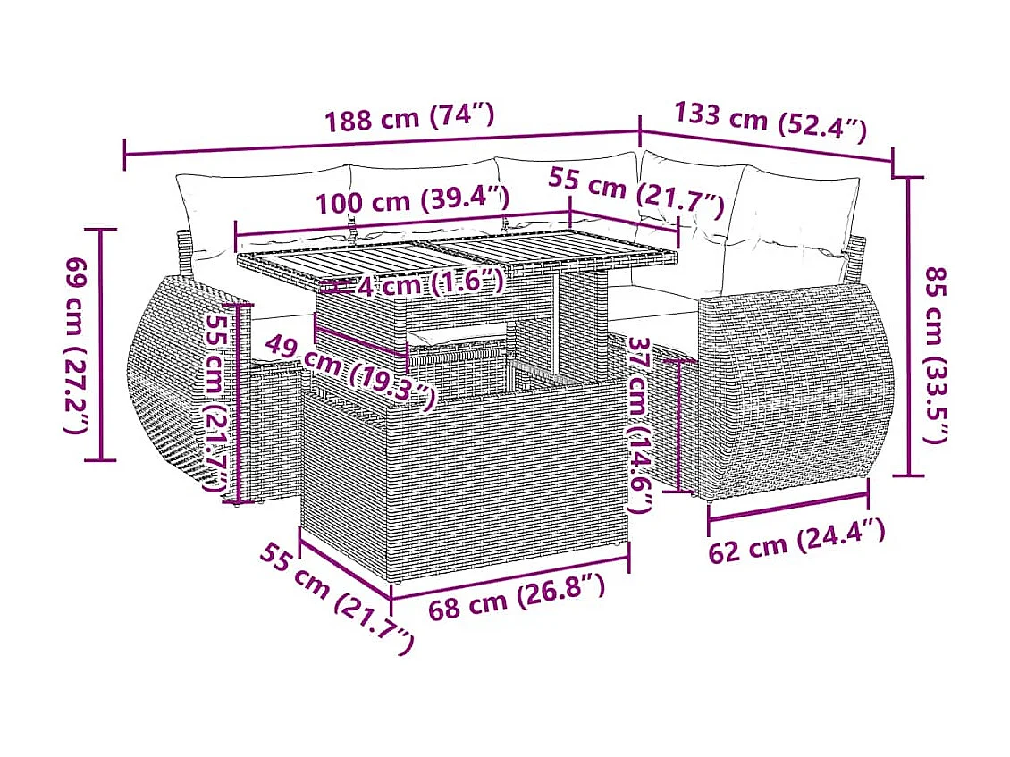 Salon complet de jardin Canapé 2 places et 2 fauteuils