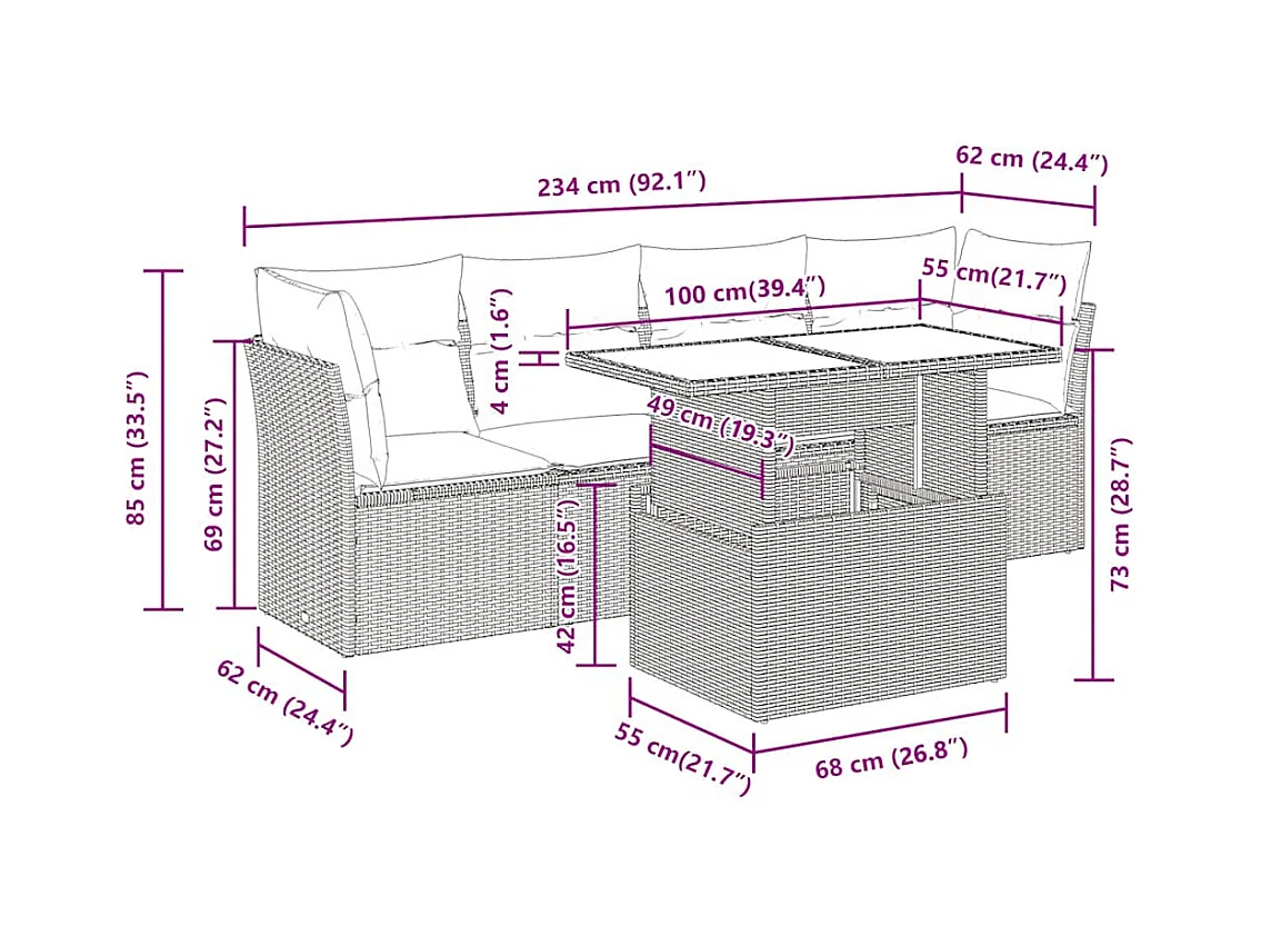 Salon complet de jardin Canapé 2 places et 2 fauteuils