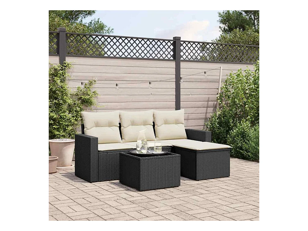 Salon de jardin 5 pcs avec coussins noir résine tressée