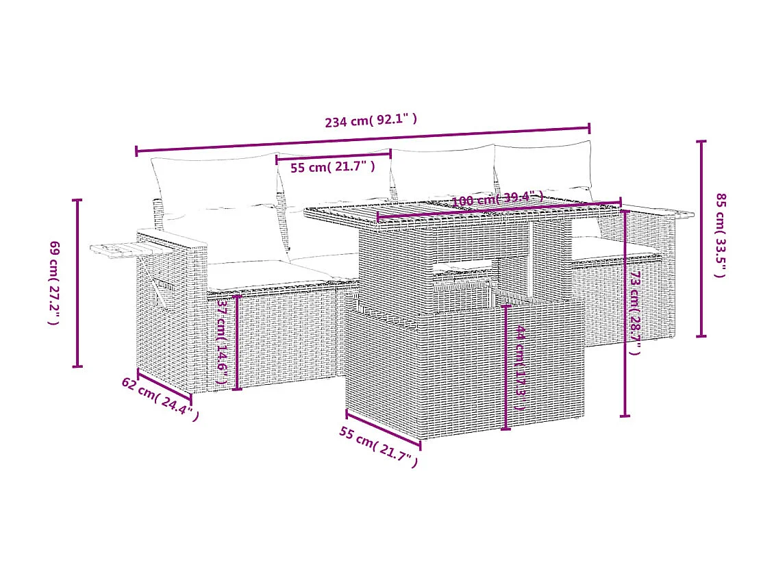 Salon complet de jardin Canapé 2 places et 2 fauteuils