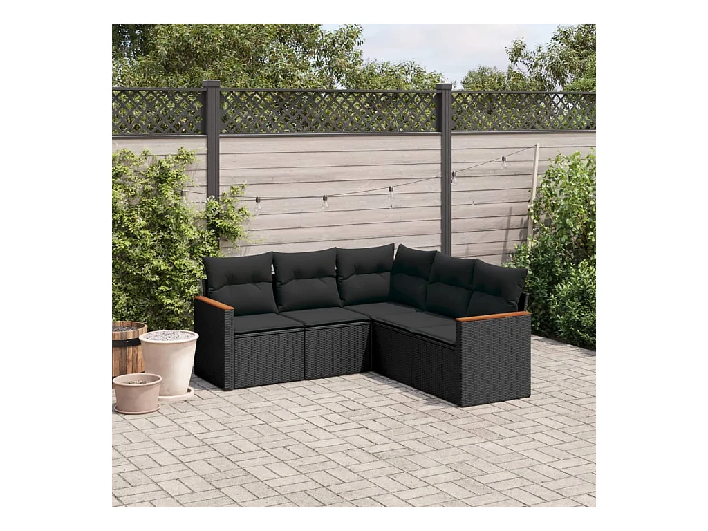 Salon de jardin 5 pcs avec coussins noir résine tressée