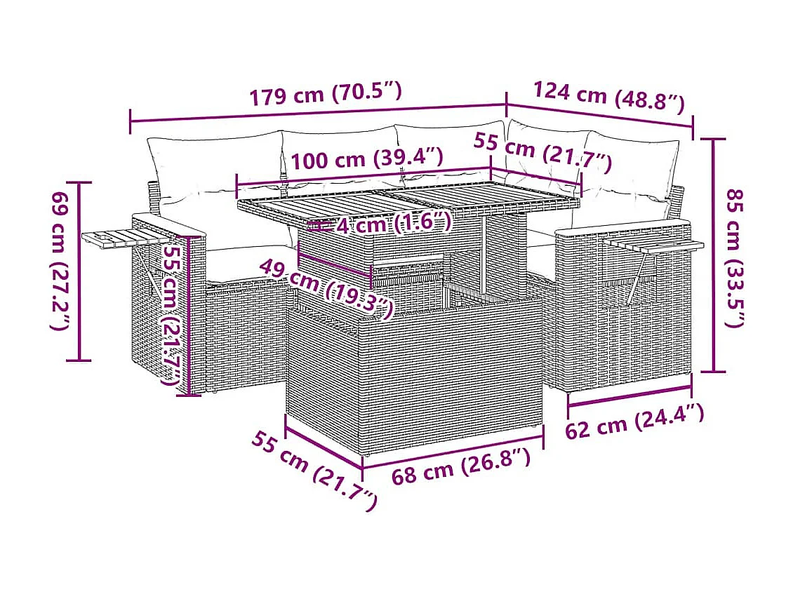 Salon complet de jardin Canapé 2 places et 2 fauteuils