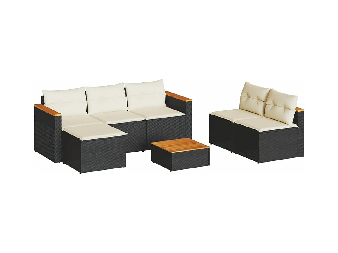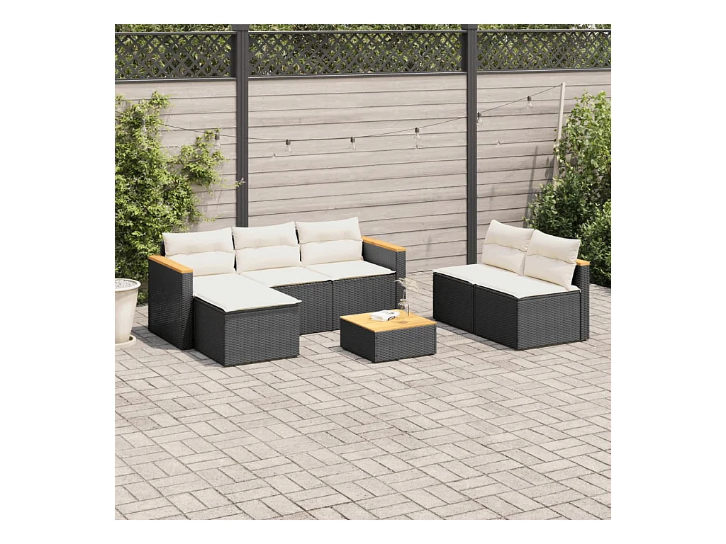 Salon de jardin 8 pcs avec coussins noir résine tressée