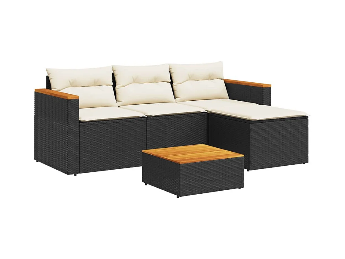 Salon de jardin 5 pcs avec coussins noir résine tressée acacia