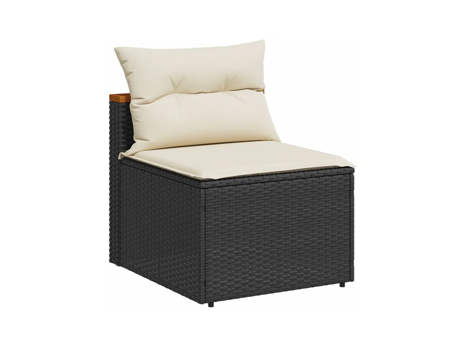 Salon de jardin 9 pcs avec coussins noir résine tressée