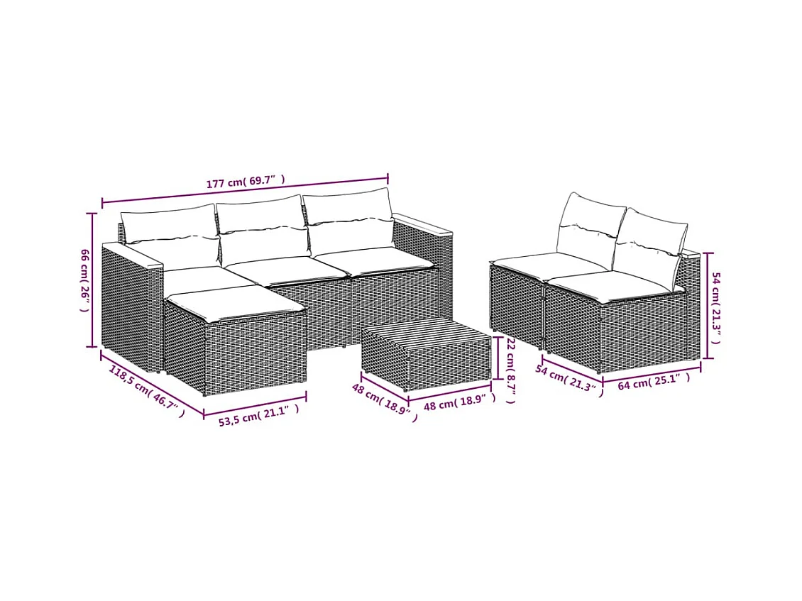 Salon de jardin 7 pcs avec coussins noir résine tressée