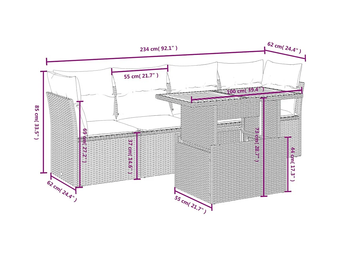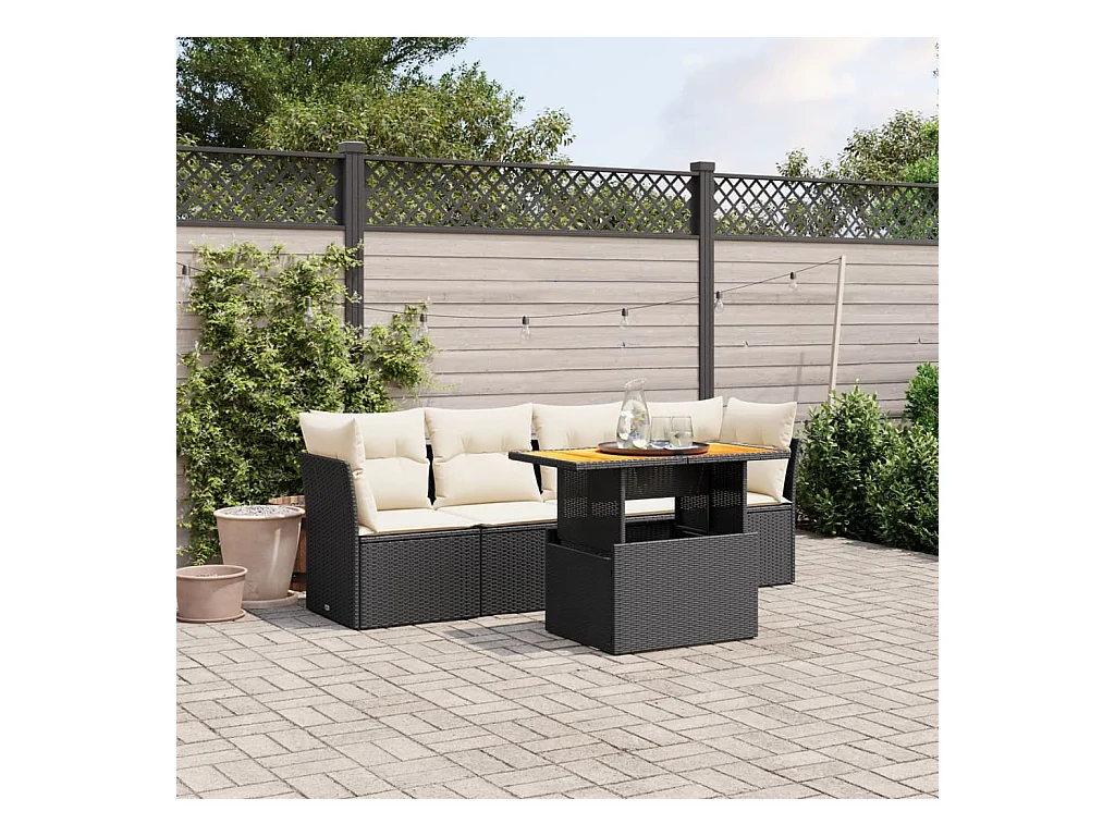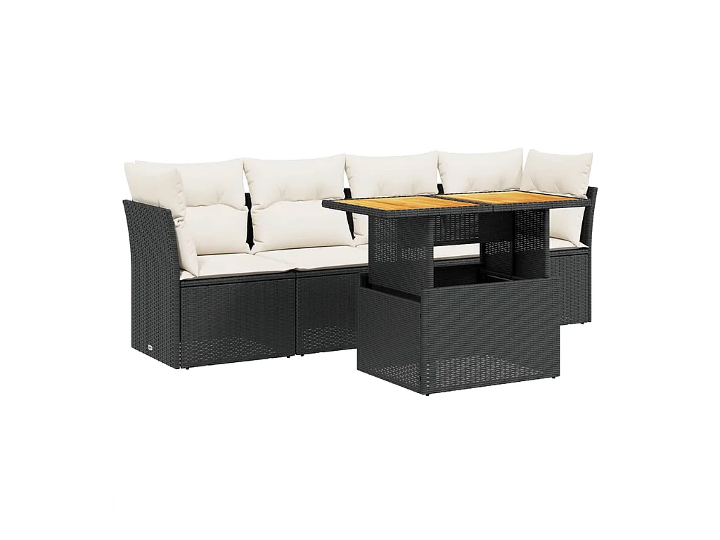 Salon de jardin 5 pcs avec coussins noir résine tressée FR19028