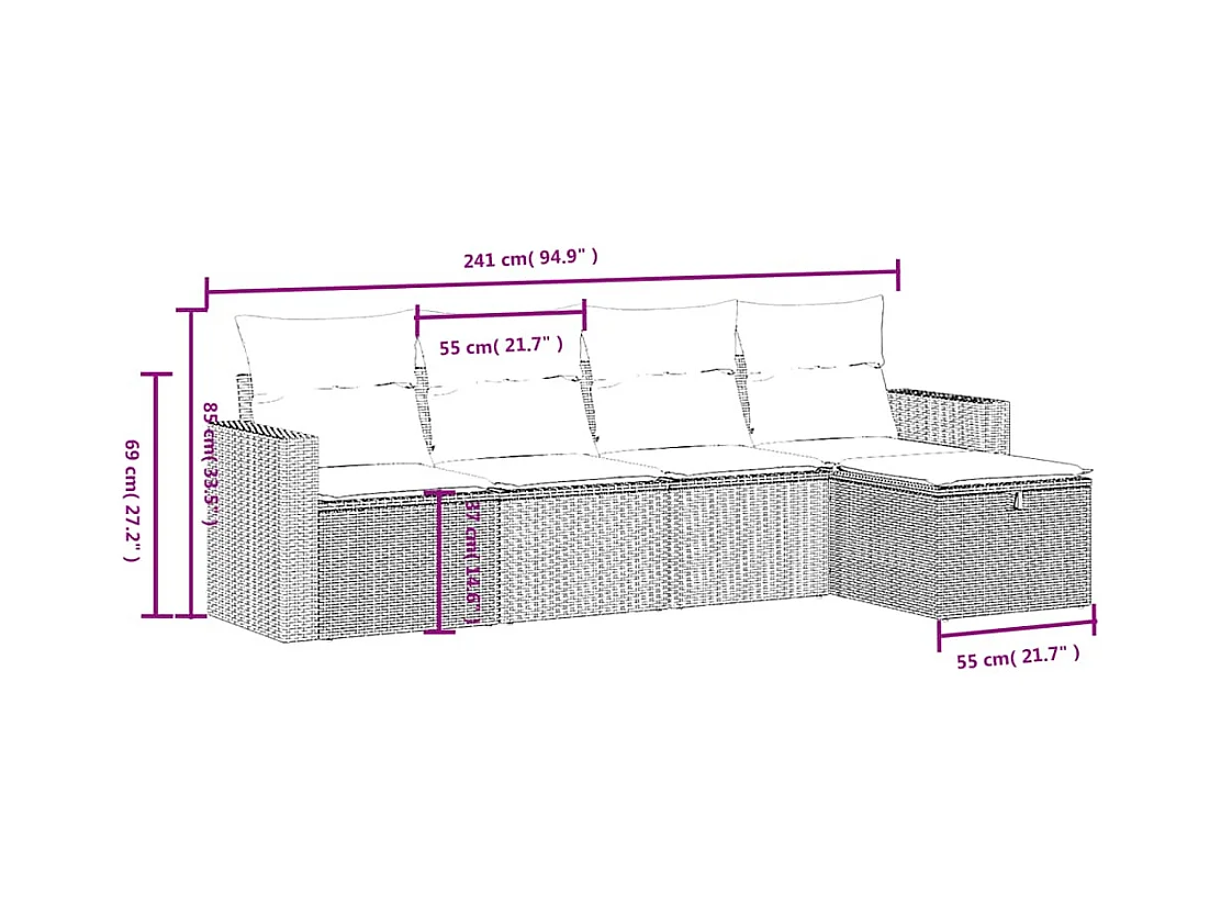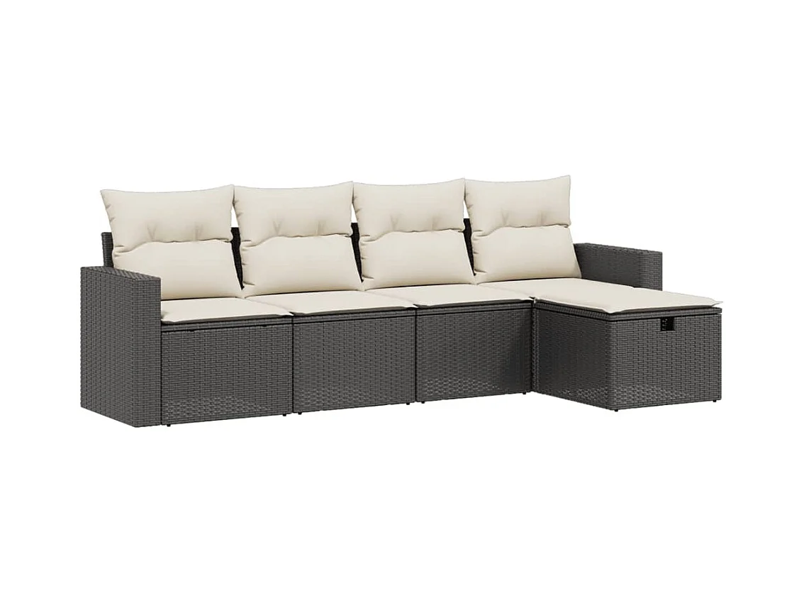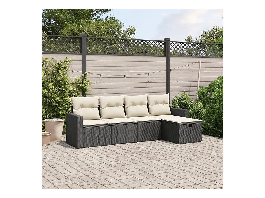 Salon de jardin 5 pcs avec coussins noir résine tressée FR22095