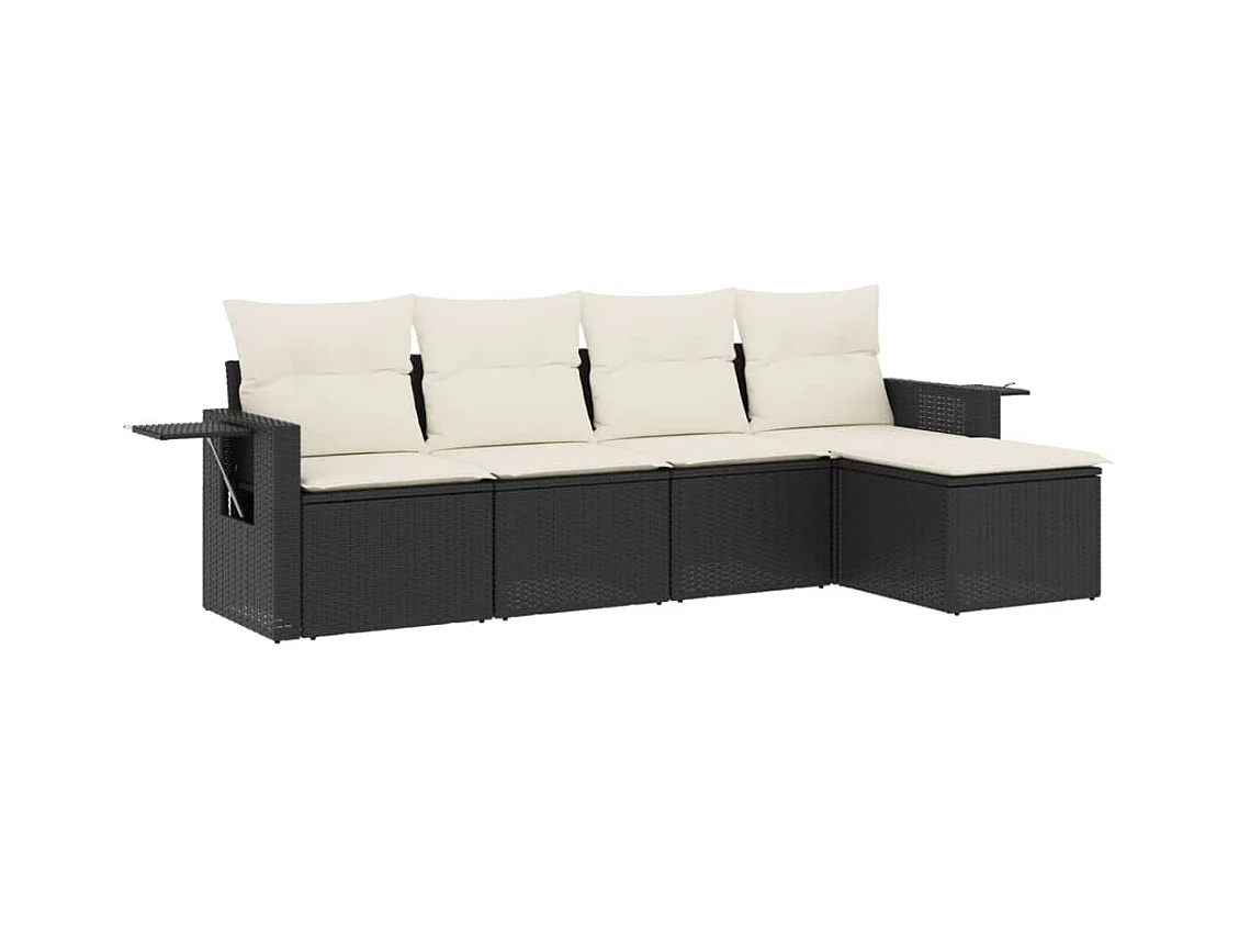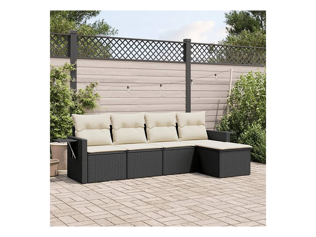 Salon de jardin 5 pcs avec coussins noir résine tressée FR25536