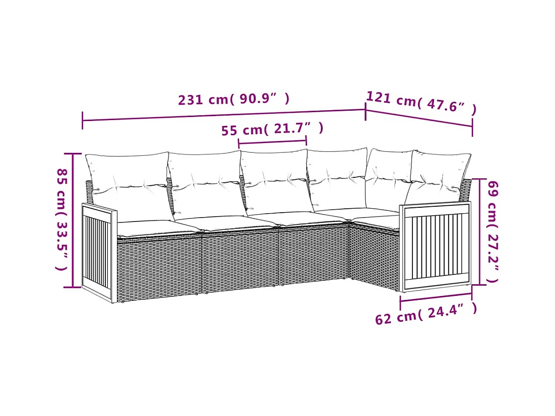 Salon complet de jardin Canapé 2 places et 2 fauteuils