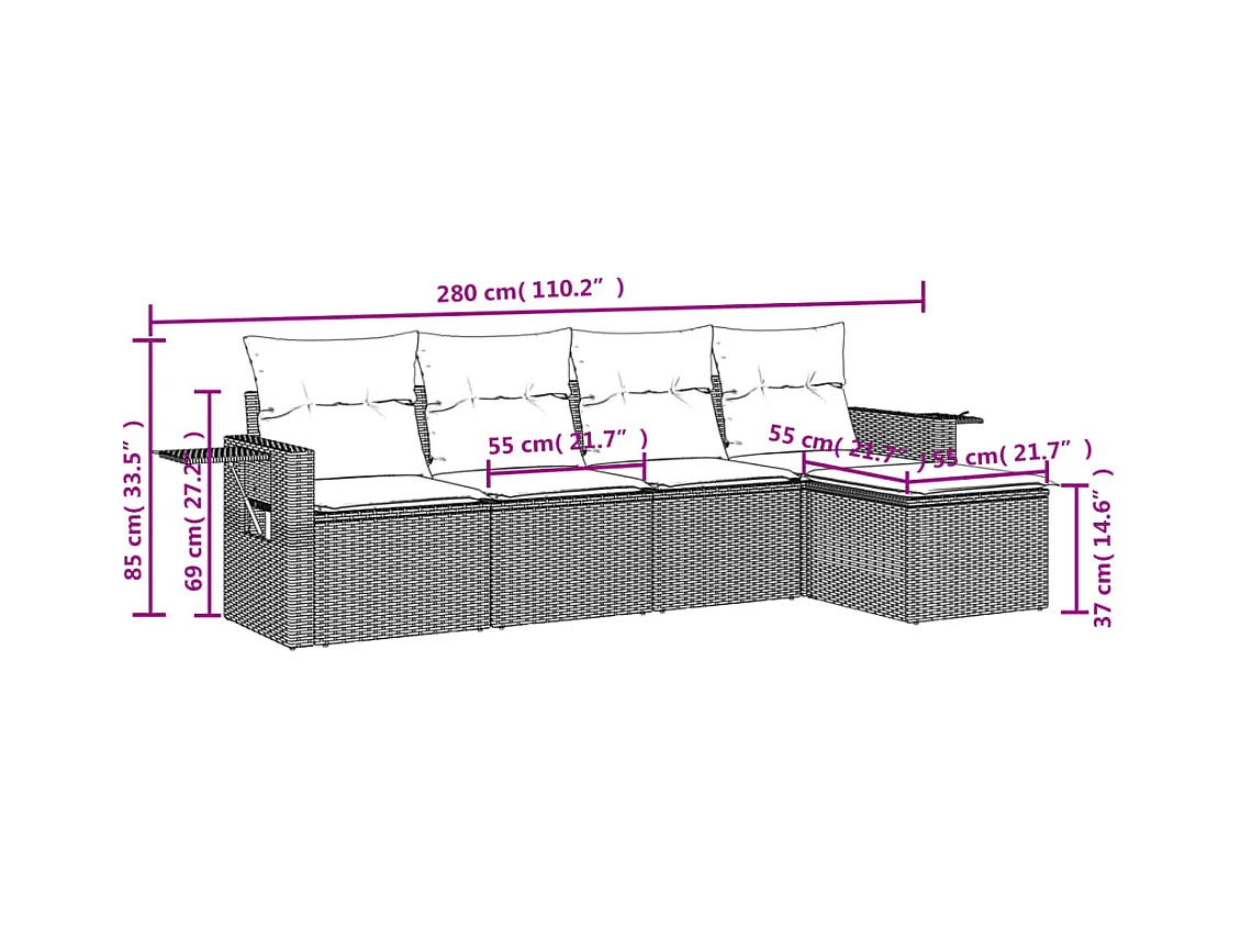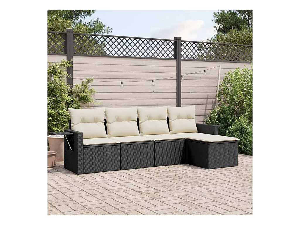 Salon de jardin 5 pcs avec coussins noir résine tressée FR36606